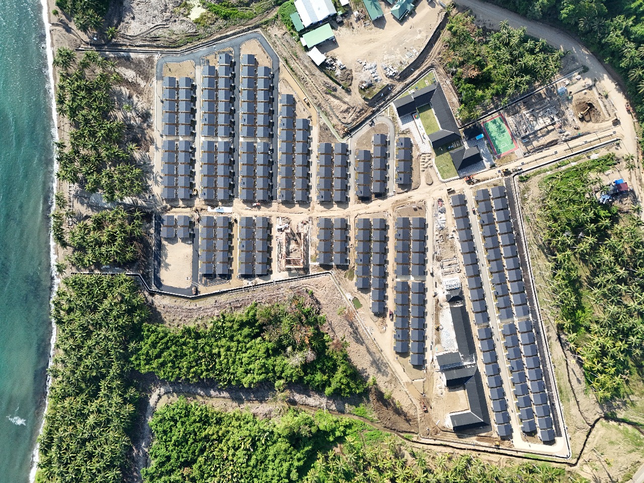 Pekerjaan yang dilakukan mencakup pembangunan sistem pengolahan air minum berkapasitas 10 liter per detik, infrastruktur kawasan permukiman, serta sarana dan prasarana sekolah. Pembangunan infrastruktur ini tidak hanya berfokus pada aspek fisik, tetapi juga pada peningkatan kualitas hidup masyarakat di kawasan relokasi. Fasilitas seperti sekolah, sarana ibadah, balai warga, puskesmas pembantu, taman bermain anak, dan sistem penyediaan air bersih dibangun secara terintegrasi dengan mempertimbangkan kebutuhan masyarakat serta kondisi geografis wilayah.