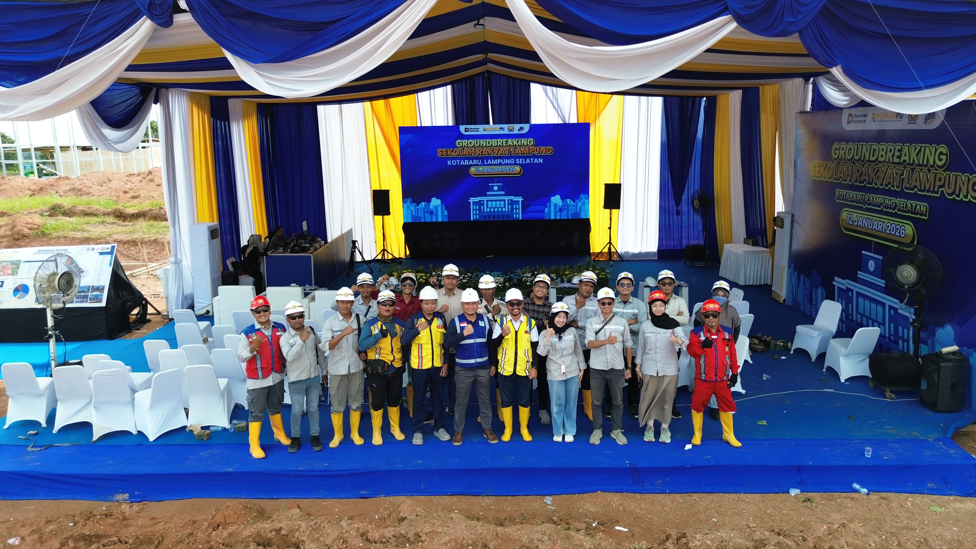 Brantas Abipraya bersama dengan Kementerian Pekerjaan Umum (PU) saat Groundbreaking Sekolah Rakyat di Kotabaru, Lampung Selatan. (dok. Brantas Abipraya)